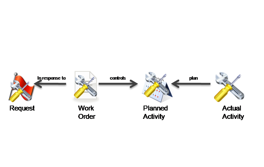 Someone then accepts the assignment and an actual activity is created with a status of “New” and linked to the plan. They start the work and the status changes to “In_work”. They complete the work, and the status changes to “Completed”, and the methods and tools used are identified, to complete the definition of what actually happened.