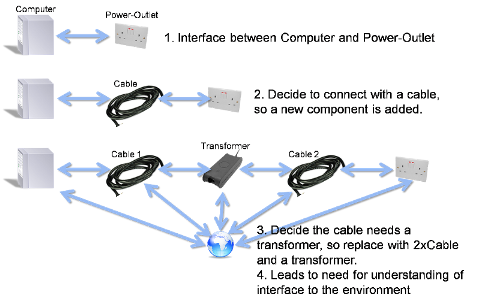 It order to manage the development of a complex product like an aircraft, it is divided into logical pieces (or COMPONENTS) that can each be developed independently. The boundaries between the components are known as interfaces.