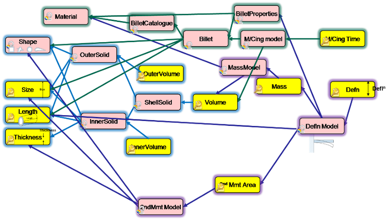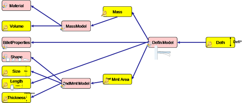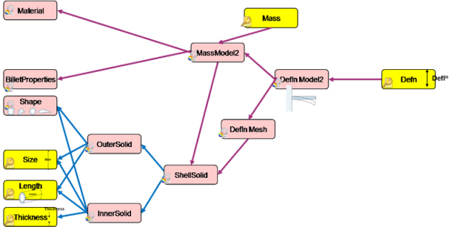 Finally there is a stage that brings in some manufacturing issues. Here the scenario is, that depending on the size of the beam, different billet sizes have to be used, and these have different material properties (Youngs modulus) due to the roll characteristics of the forging process