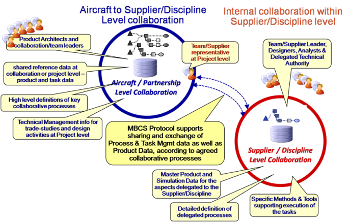 The above image shows a typical use of the MBCS protocol to enable collaborative working between an OEM and a supplier. It also highlights other collaborative processes and data that must be managed by a BDA. Therefore, in order to support the models based design approach in an extended enterprise, the BDA must: