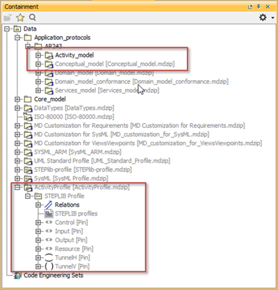 This assumes that the environment is already set up. See Getting Started - MagicDraw for more details. Also that there is an Activity_Model node, Conceptual_Model node and the Activity profile is included as shown below.