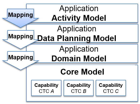 The mapping between the Application Activity Model and Application Data Planning Model is achieved using Data Planning objects as the conveyed information on object flows between activities in the Application Activity Model. This is described in How to model the Application Activity Model of STEPLIB