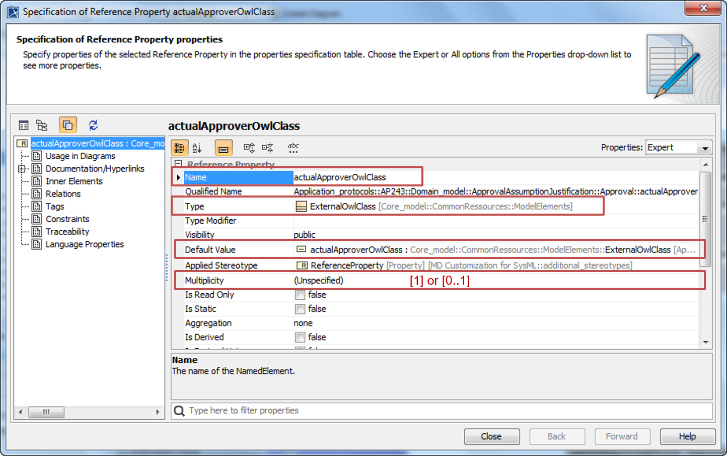 - set the multiplicity. This should be either [1] for compulsory objects or [0..1] for optional.