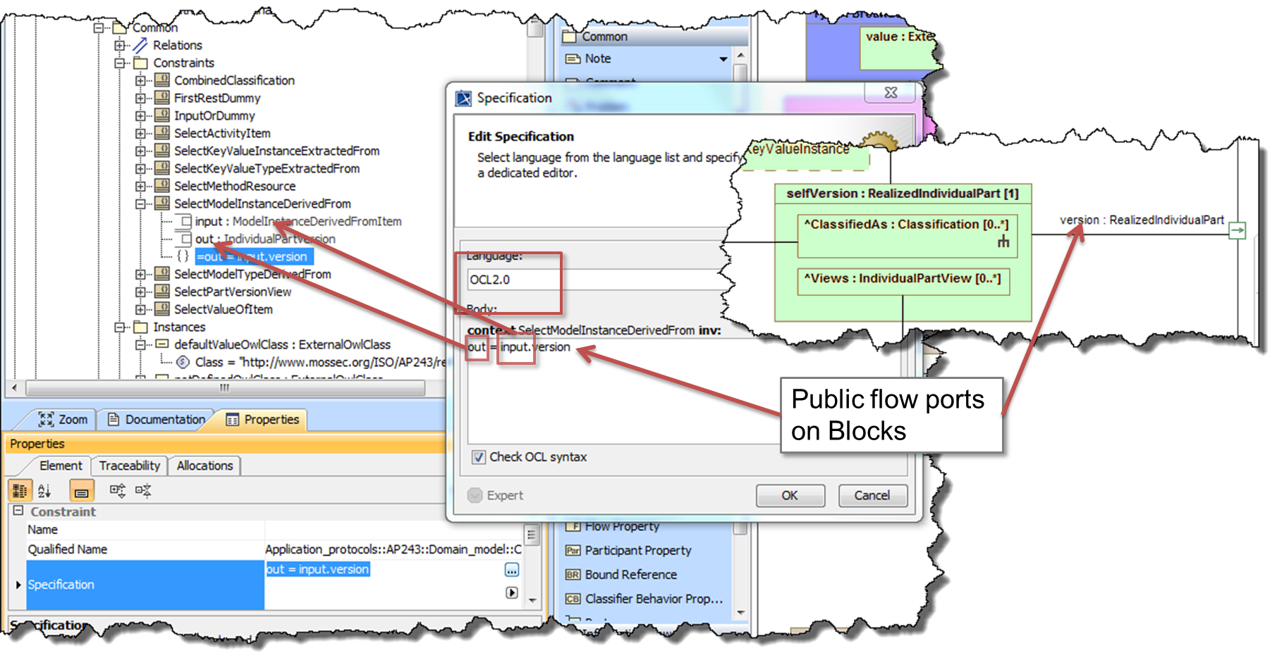 To make the “Select” constraints simpler, it is recommended that a naming convention is applied to the flow ports. For example in AP243, the following convention was used: