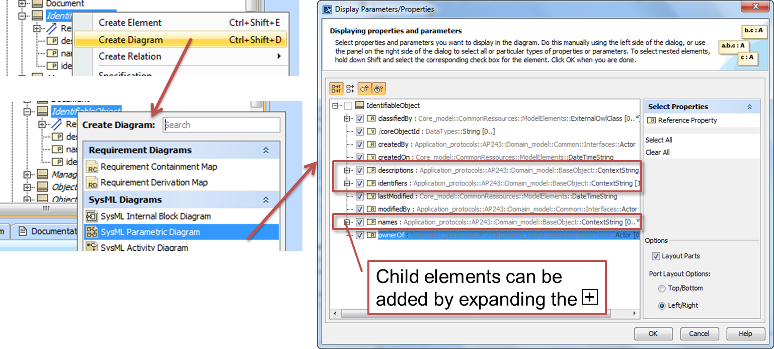 The following are rules applicable to layout and formatting of elements in Parametric Diagrams: