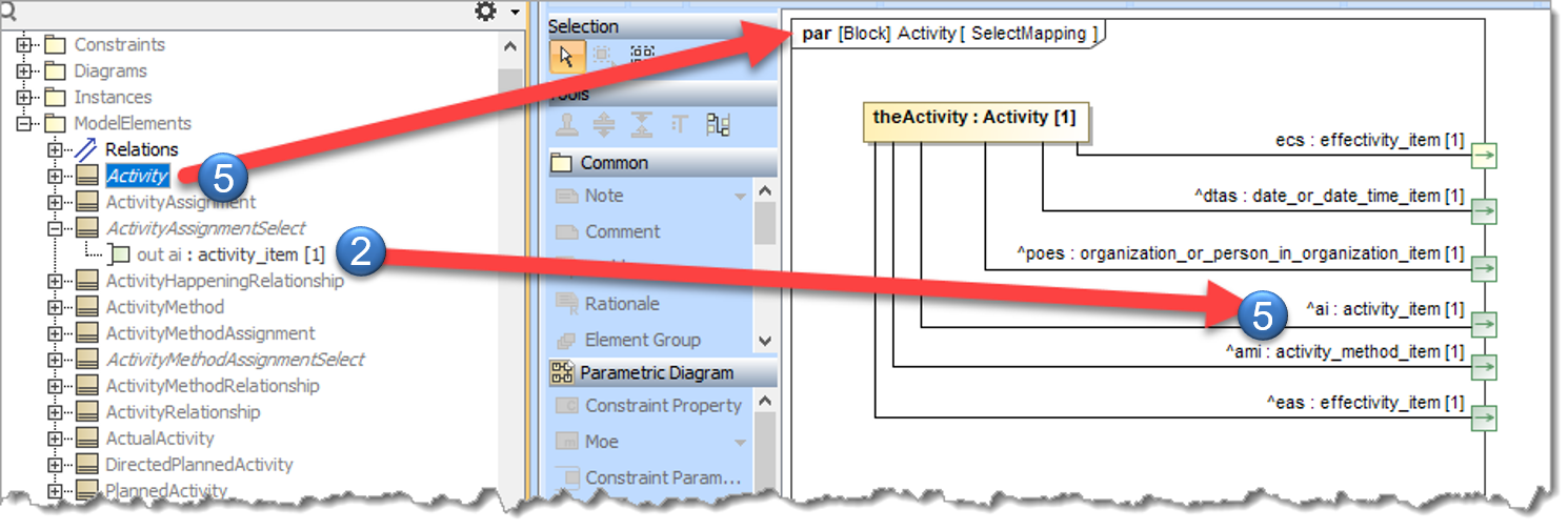 - We can (with some effort!) show the mapping inherited from the supertype in the parametric diagram of the subtype