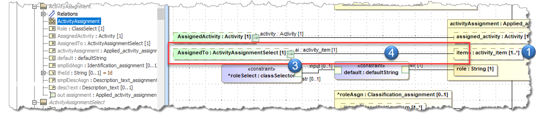 - drag the Protected part property idAsgn from PartView into the inherited section of the diagram.