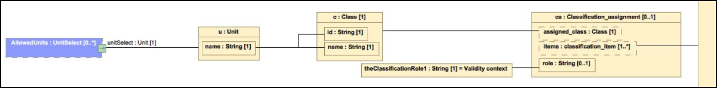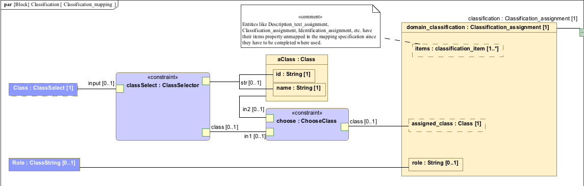 - for each of the specializations in the DomainModel’s SELECT type, provide a SELECT mapping as a parametric diagram (inside the concerned Block), that shows how the target ARM specialization is mapped to that port.