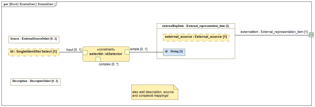 The proposed mapping will map the ExternalItem to an External_representation_item, then in the mapping of ExternalRepresentationItem we use this mapping (identical!) and add the name property.
